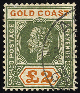 #78 (SG124) 1912 KEVII £1 purple and black on red high value. OG. Just a trace of the usual rubbing. Fine+. (Scott $360, SG £300). PHOTO |