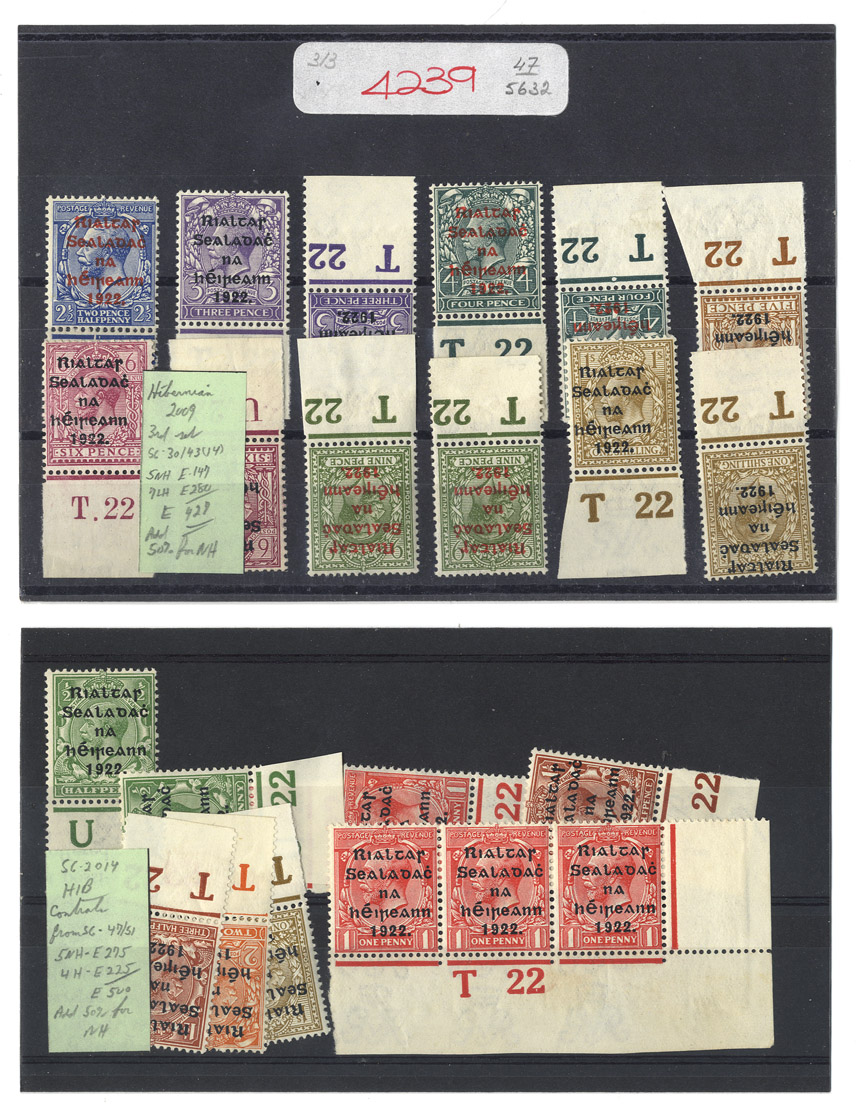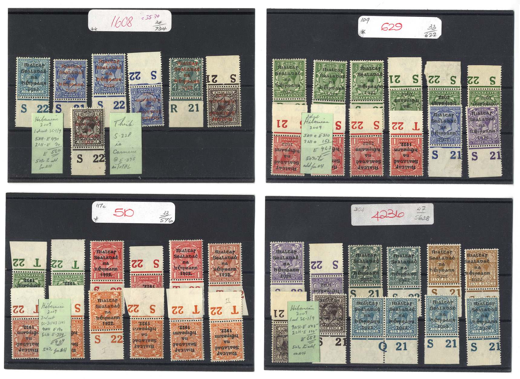 #1//43 (SG1//51) 1922 KGV ½d - 1/ Collection of over 60 control number singles plus one pair and a strip of 3 with a nice variety of denominations, control numbers and perf and imperf margins. About half NH. F-VF. (Owner’s Hibernian cat. value €3,000 plus premium for NH). PHOTO1 PHOTO2 |